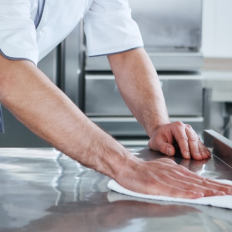 Los utensilios, baterías, cuberterías, vajillas y vasos se lavan y desinfectan sin necesidad de jabones químicos y resultan más brillantes. Se eliminan manchas y marcas de cocinado, quemados, grasa, mugre, marcas de café… resaltando los objetos de cristal, loza, porcelana y acero inoxidable mucho más brillantes. Aporta una desinfección total a superficies de trabajo, tableros de corte, estantes y todo el mobiliario y maquinaria de cocina.